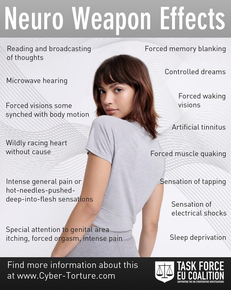 Commençons par les armes Ă Ă©nergie dirigĂ©e (Directed Energy Weapon – DEW en anglais) ou Neuro-armes (Neuroweapons en anglais), elles constituent le pilier de la cybertorture en utilisant des ondes Ă©lectromagnĂ©tiques et des frĂ©quences nuisibles. Leur existence est largement documentĂ©e et reconnue par l’UE et l’ONU commence Ă se pencher sur les abus de cette technologie Ă partir de plaintes civiles.