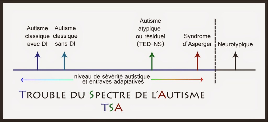 L’une de nos plus grande difficultĂ© Ă prĂ©senter nos spĂ©cificitĂ©s aux personnes ne l’Ă©tant pas est l’image qu’a la sociĂ©tĂ© de l’autisme, ne sachant pas qu’elle possĂšde un spectre nommĂ© TSA : trouble du spectre autistique et que les personnes vivant avec peuvent y Ă©voluer au cours de leur vie.