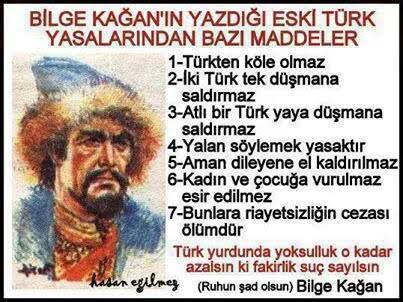 Toujours de Bilge Khan voici des lois l’Ă©thique guerriĂšre ancestrale des Turcs :