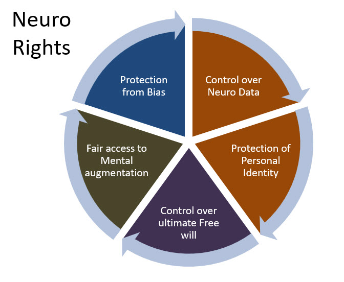 Les chercheurs les mieux informés et conscients du potentiel détournement ces technologies comme Rafael Yuste et Jared Genser ont crée la fondation pour les Neuro-Droits avec ses 5 axes :
